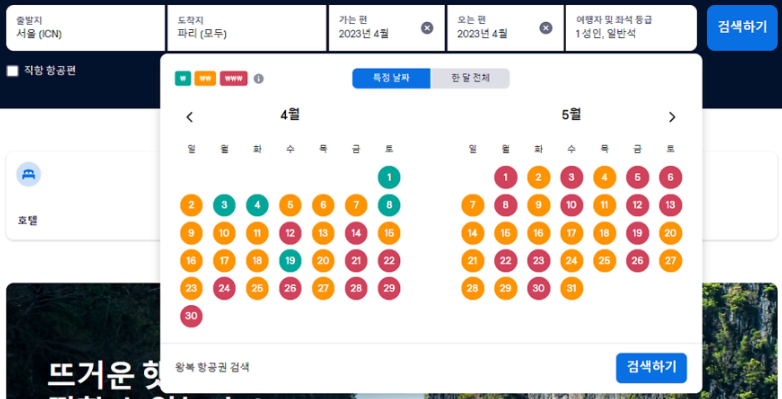 특정 계절 항공권 예약하기